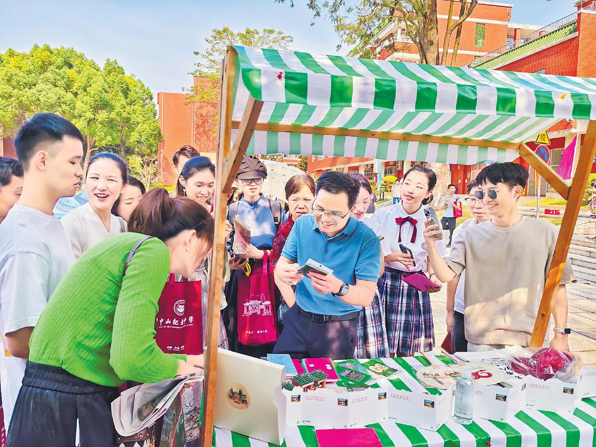 中山纪念中学的师生和校友选购校庆集邮文创产品。