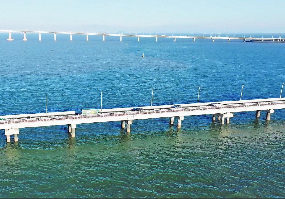 邮车行驶在港珠澳大桥上。 □张慧 摄