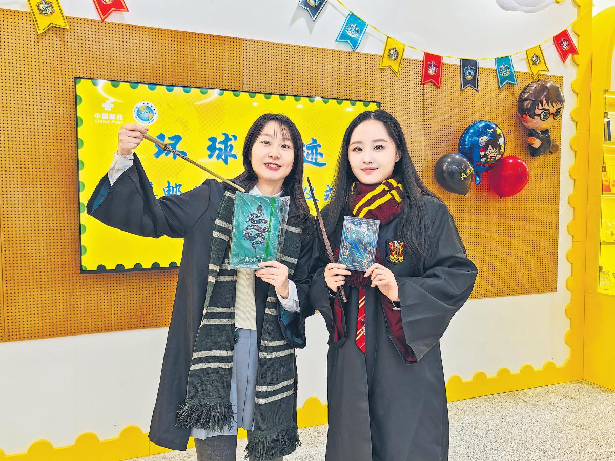 近日,环球邮迹集邮旗舰店在北京建国门邮政支局正式开业。该旗舰店内设立外国邮票展示区、文化活动区、产品销售区和邮文化交流区,展示、销售来自世界各地的邮票,为集邮爱好者提供了一个全新的交流平台。图为邮政工作人员在店内展示中国集邮与全球知名文化ip哈利·波特联名推出的《蛇愿》生肖邮票珍藏套装产品。
