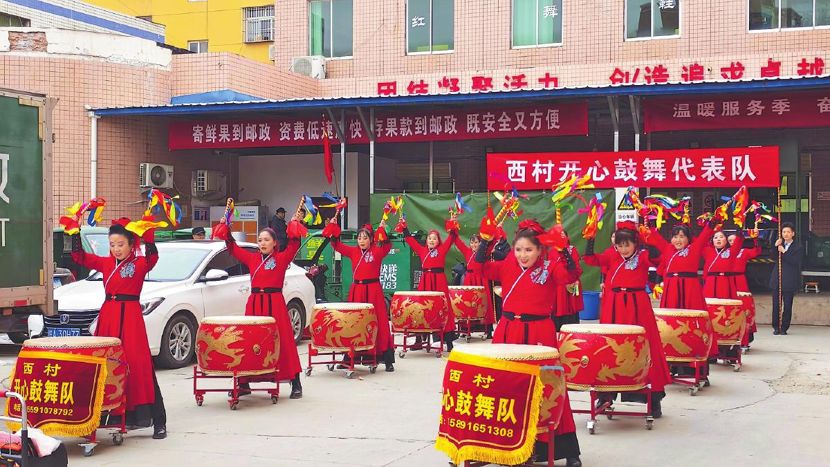 2月6日,陕西省永寿县监军镇西村开心鼓舞代表队活力满满地走进永寿县邮政分公司。队员们一袭红衣鲜艳似火,鼓槌灵动起落,鼓声热烈响亮,为永寿邮政加油鼓劲。在新的一年里,永寿邮政将奏响奋进旋律,加快业务发展,更好地为广大群众服务。