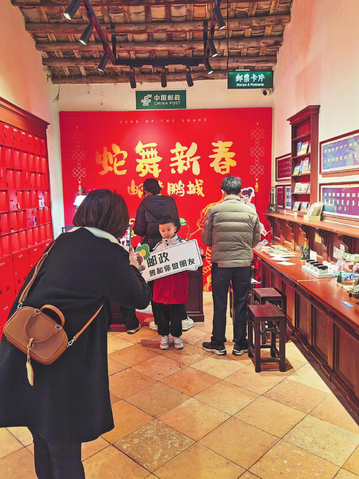 充满年味的时光邮亭成为游客打卡留念的热门地点。□李伟东 摄