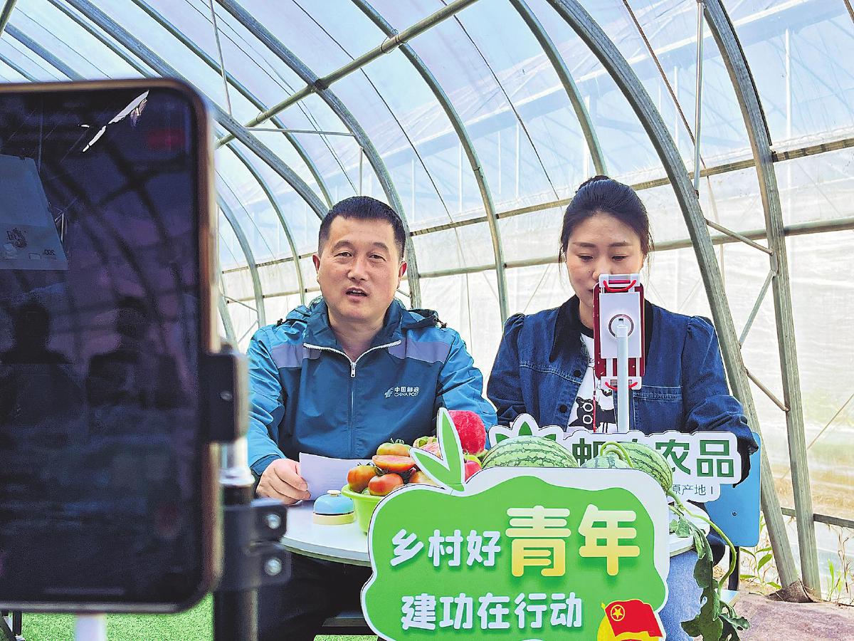 连云港市邮政分公司开展直播活动,主推“灌云果蔬”基地农产品。