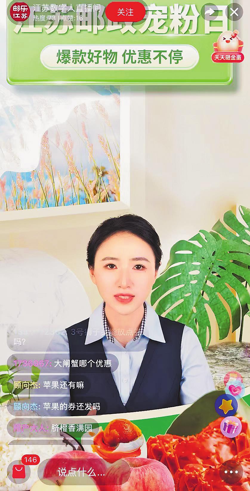 直播中的江苏邮政数字人主播。
