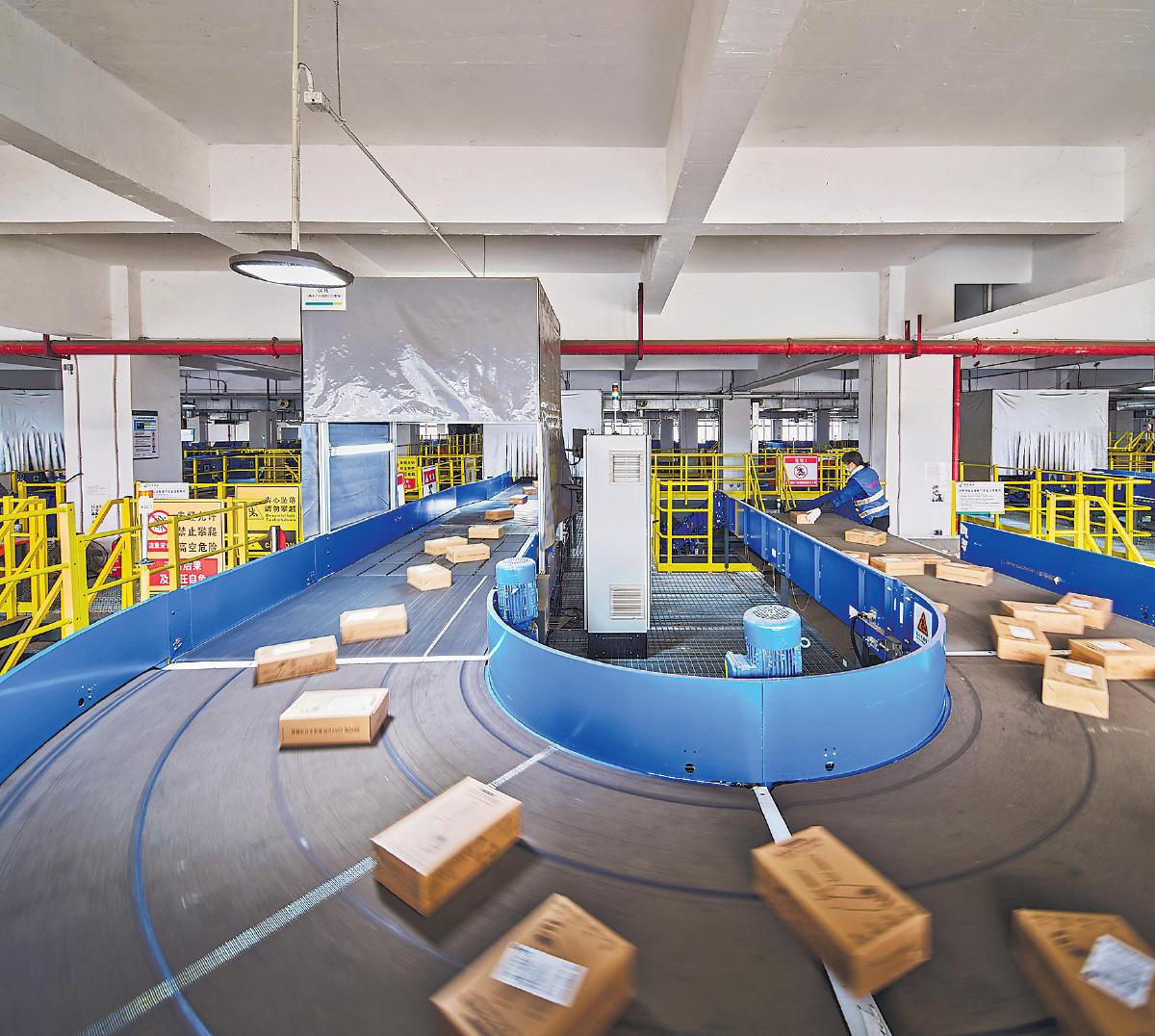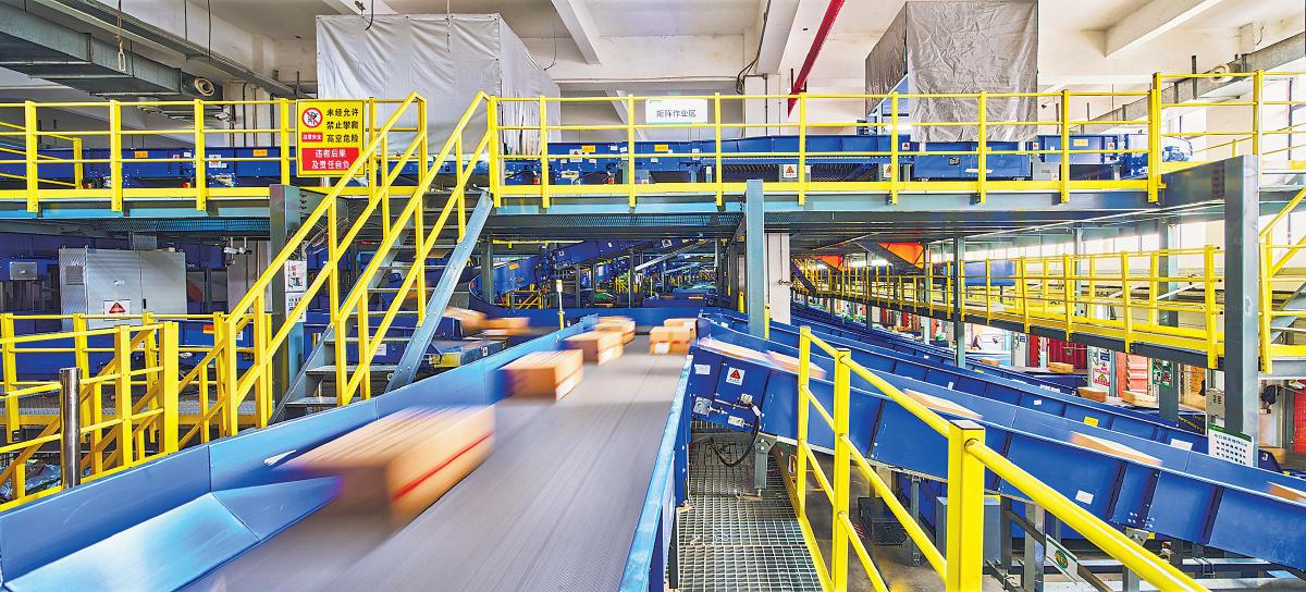 在广州邮区中心机场北处理中心,邮件在传送带上快速流转,经过智能分拣系统的精准识别和快速分拣,高效完成内部作业处理。□杨晓明 摄