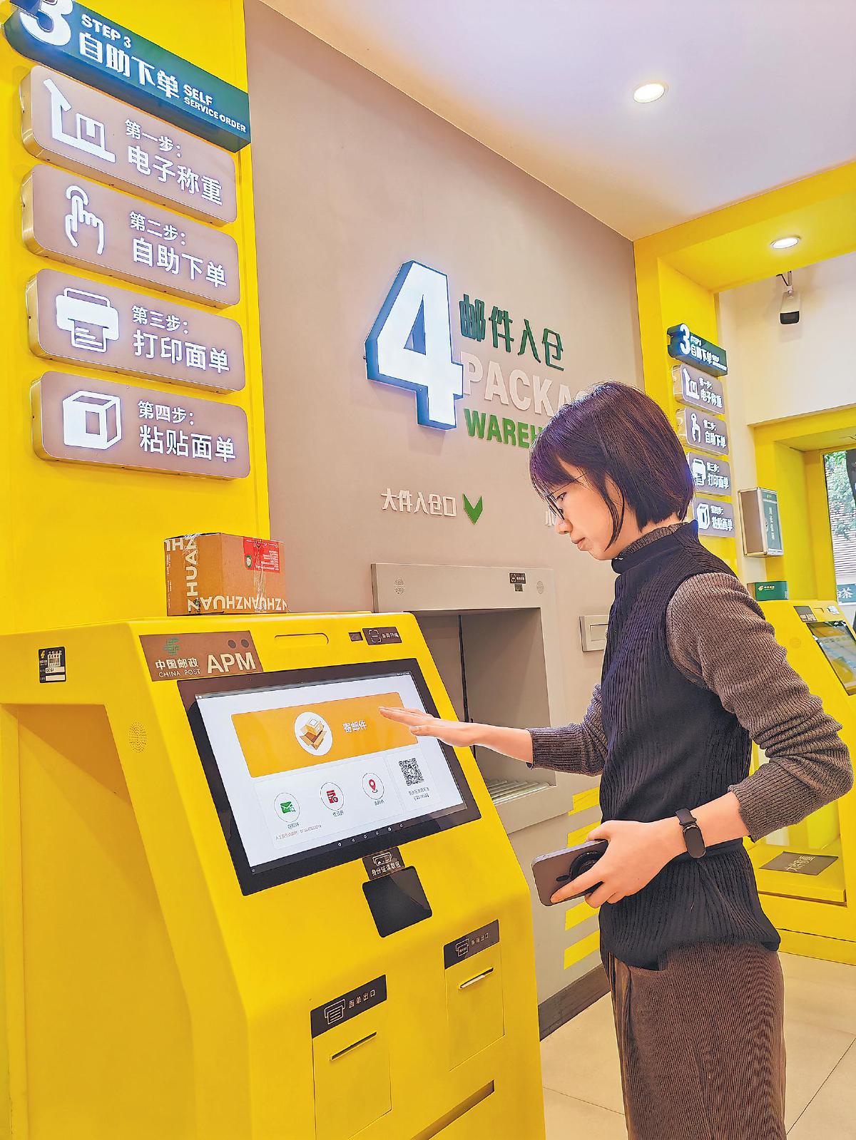 在深圳市福田区的自助体验式邮局,客户通过先进的智能设备轻松完成包裹寄递业务。现代化的设备、创新的营业处理方式与传统邮局形成鲜明对比,成为科技赋能邮政服务的典范。 □吕文礼 摄