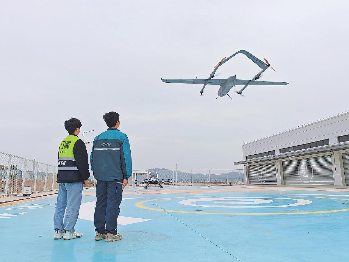 在珠海市桂山岛唐家港,无人机邮路正式启航。这一创新举措不仅实现了海岛邮件的高效运输,还为海岛居民带来了前所未有的便捷寄递体验,有效减少了海岛交通不便对人们生活的影响。 □吕文礼 摄