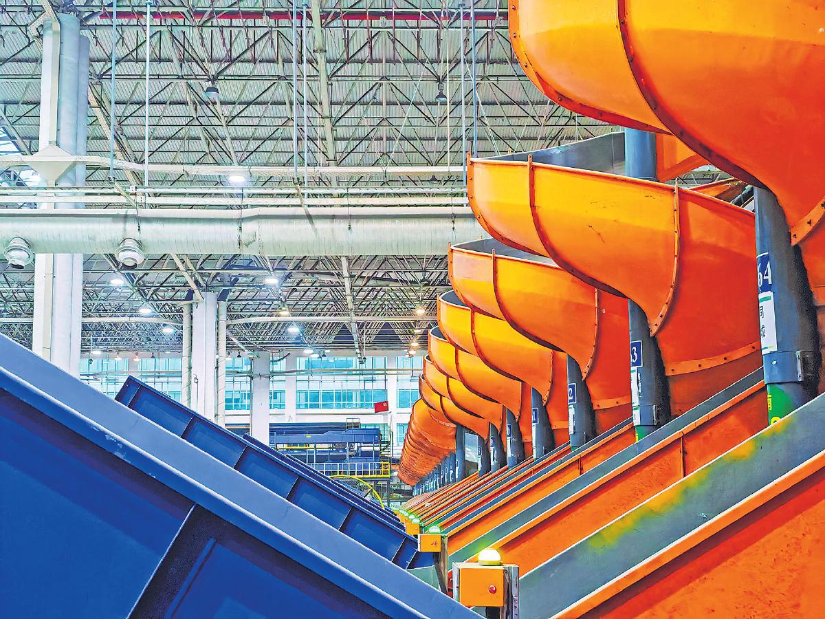 在广州邮区中心的主场地,分拣机宛如一条条橙色的巨龙高效地运转着。广州邮区中心在邮件处理方面的专业性和高效性,为优质的邮政服务提供了有力保障。 □吕文礼 摄