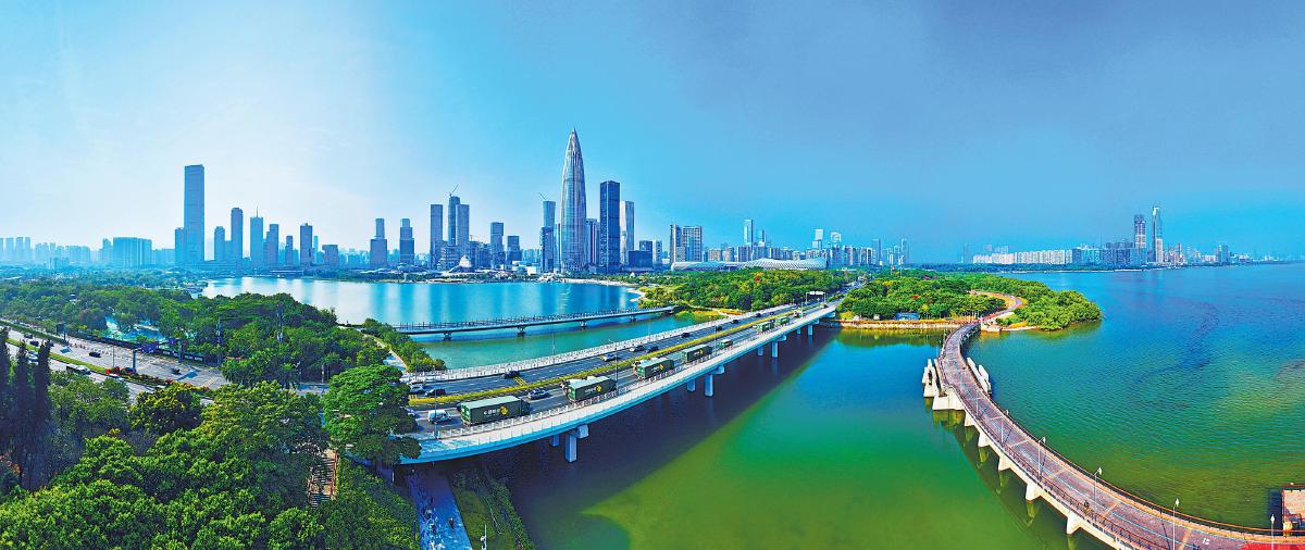 邮政车队行驶在繁华的深圳湾畔,为当地居民和企业提供了便捷高效的邮政服务。□陈师 摄