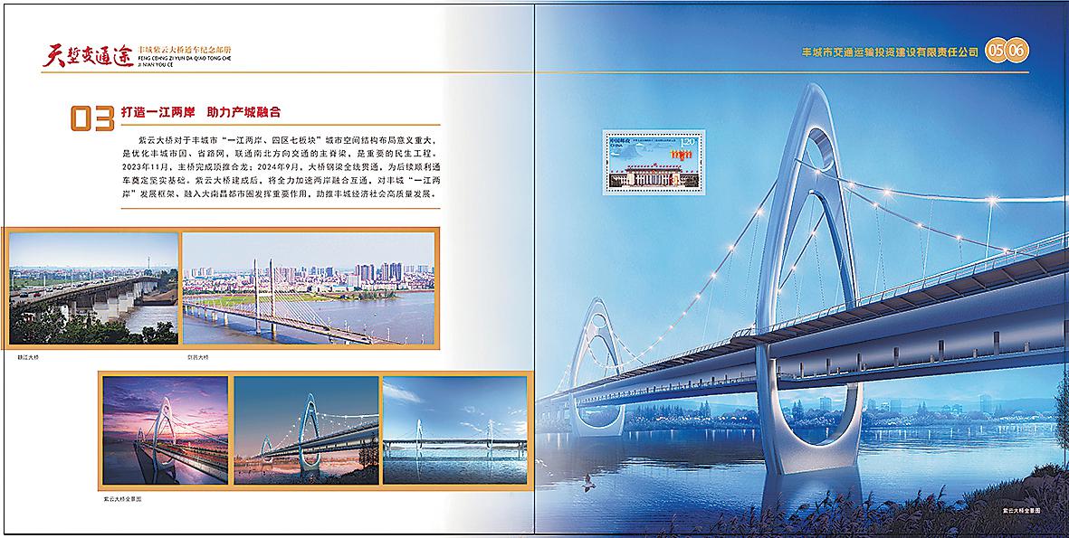 该套纪念邮册内容丰富,不仅囊括了紫云大桥从规划设计到竣工通车的珍贵影像,还巧妙融合了邮票文化,用“方寸之间见天地”的艺术,全方位展现大桥的宏伟英姿与深远意义。从前期与政府部门、建设单位的密切沟通,深入挖掘大桥背后的故事,到精心策划邮册架构、严格筛选优质素材,再到最终设计制作完成,丰城市分公司精益求精,力求将纪念邮册打造成记录城市发展、传承地方文化的精品之作。
