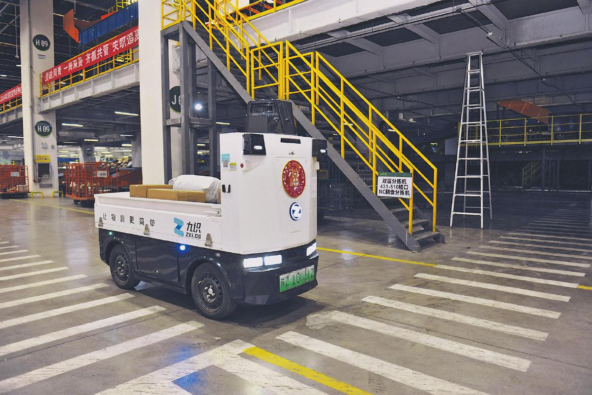 从窄带区格口到最远的装车垛口差不多有200米距离,一名熟练的分拣员推着装满邮件的沉重笼车走完一趟至少用10分钟,而无人盘驳车完成同等强度的工作只需要6分钟。“笼车本身的自重就很重,装满邮件后要想推动它就变得比较困难,有时候就得两个人一起推,导致分拣线上人手更加紧张。邮件还会遮挡视线,笼车撞到柱子上的事情也时有发生。无人盘驳车的运行很好地解决了这些问题。只要分拣员用手机里的小程序下达指令,无人盘驳车就可以不知疲倦地穿梭往来于格口和垛口之间,有效节省了人力成本。”胡凯说。