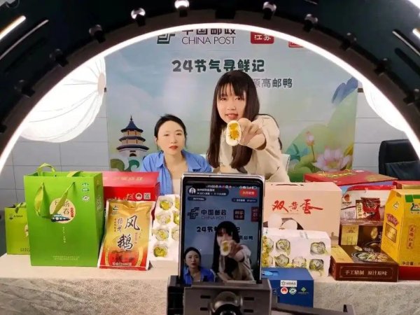 邮政工作人员直播推广高邮咸鸭蛋。