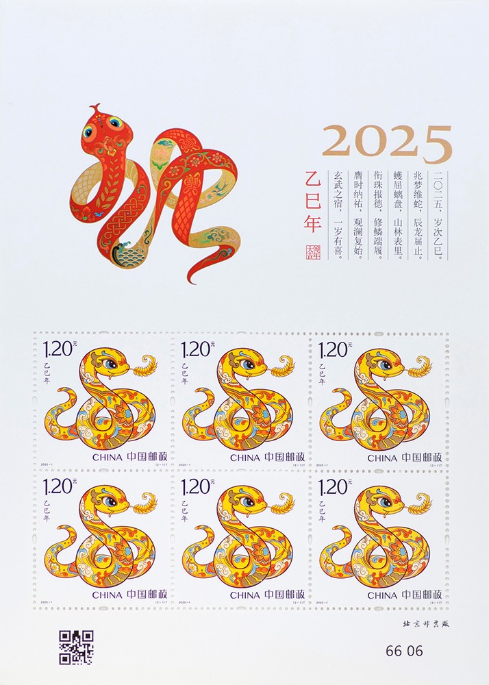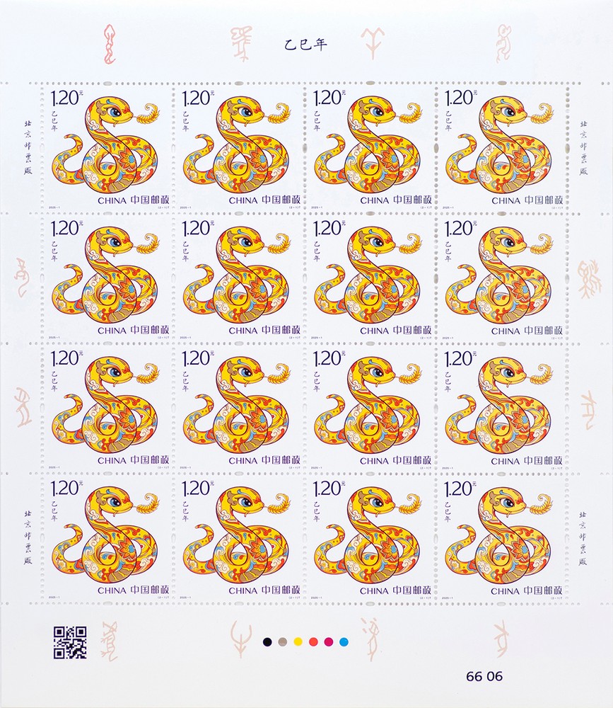 中国邮政定于2025年1月5日发行《乙巳年》特种邮票1套2枚,小本票1本。详情如下: