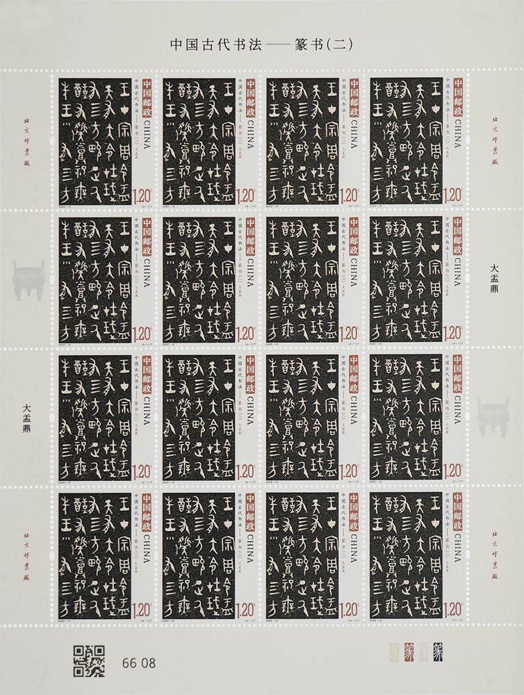 中国邮政拟定于2025年6月21日发行《中国古代书法——篆书(二)》特种邮票1套4枚,小型张1枚。邮票图案名称为:大盂鼎、中山王