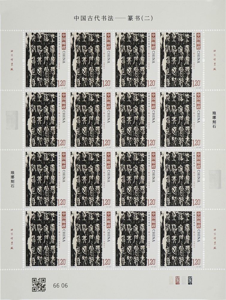 中国邮政定于2025年6月21日发行《中国古代书法——篆书(二)》特种邮票1套4枚,小型张1枚。详情如下: